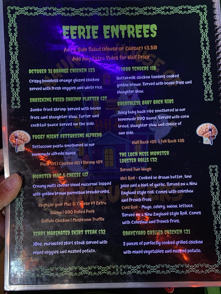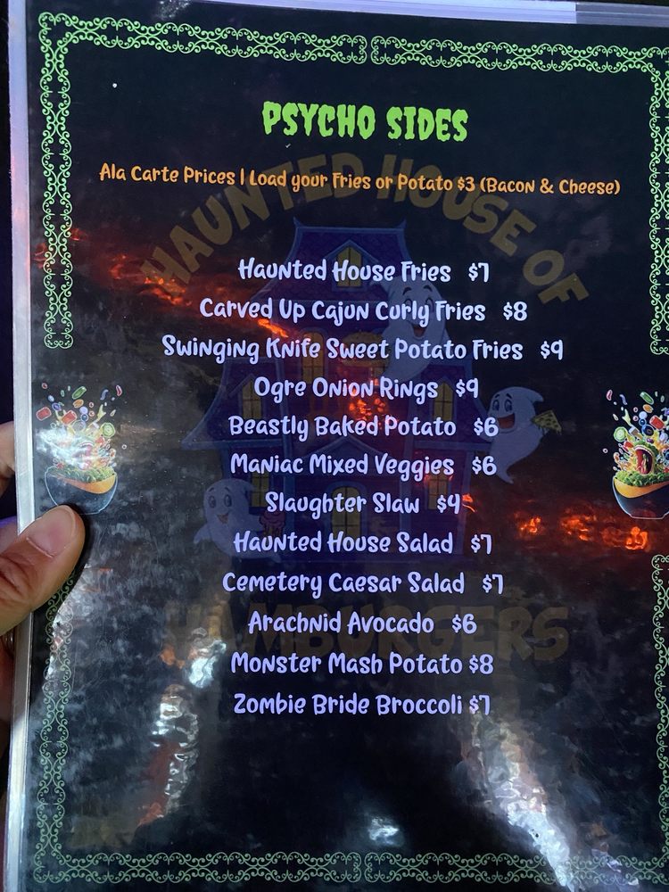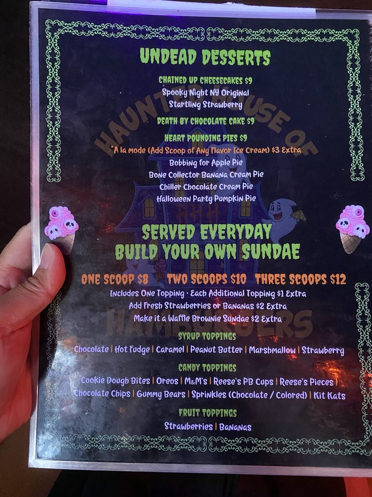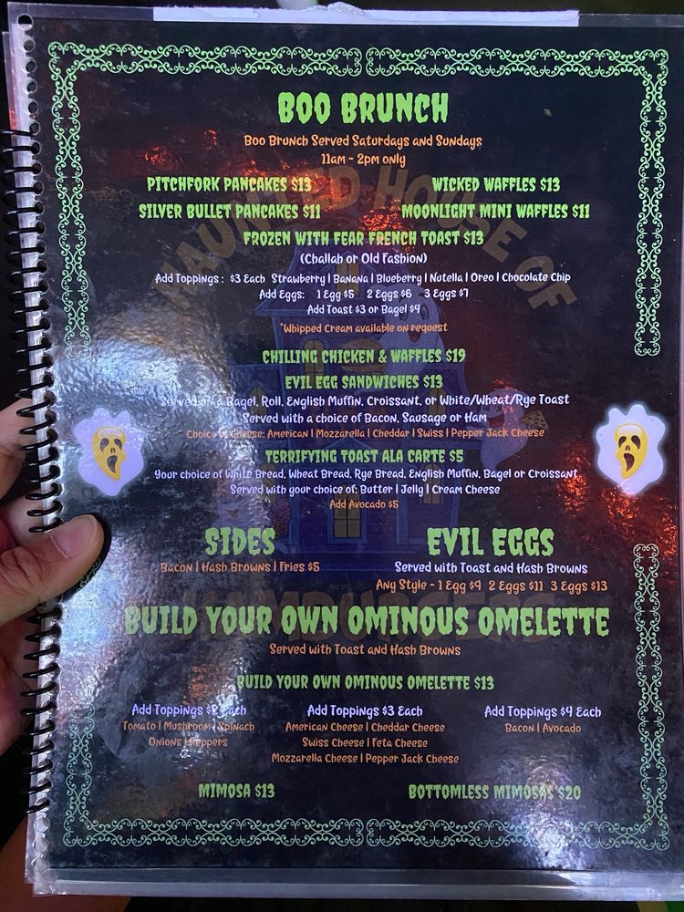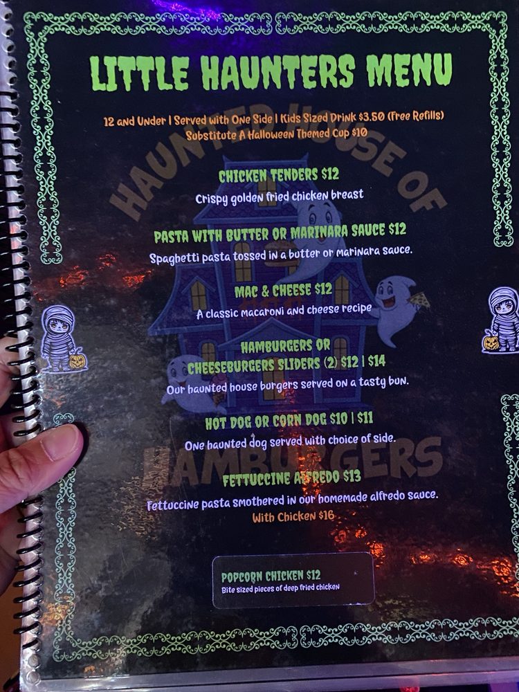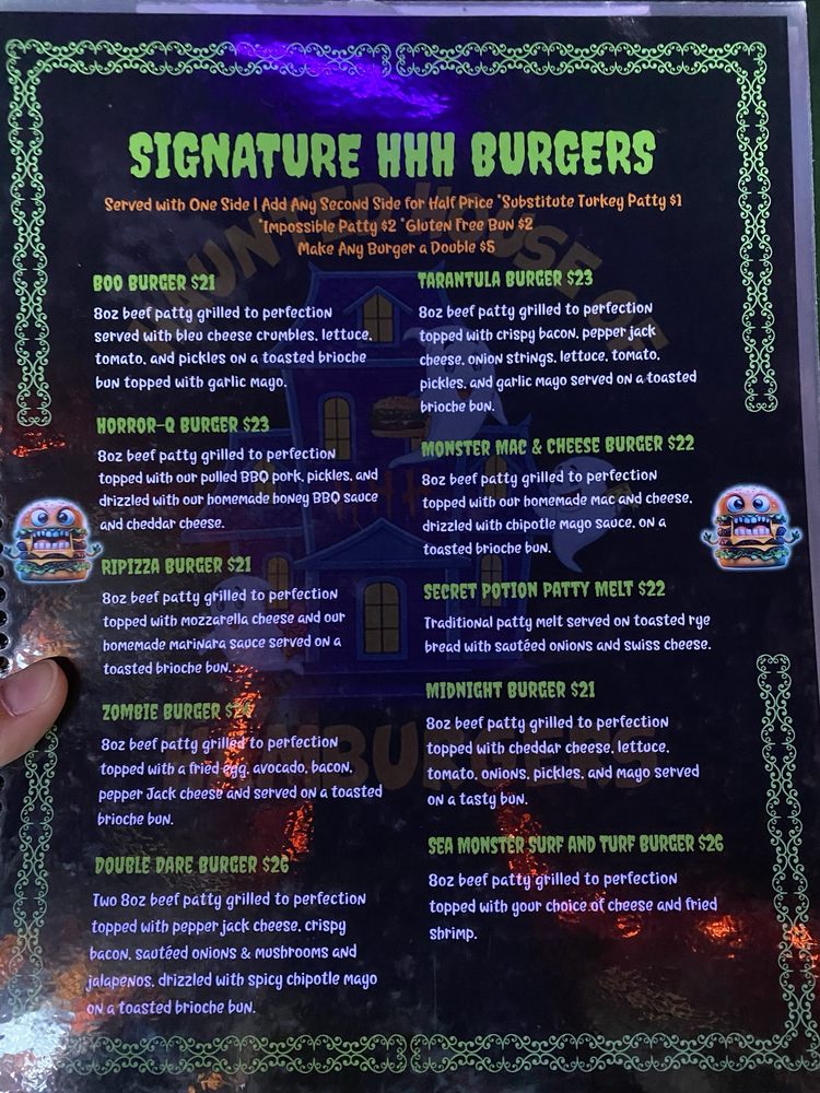 Introducing Haunted House of, located in Farmingdale, NY. This unique restaurant offers a spooky-themed dining experience with a diverse menu including desserts, soups, and burgers. Known for its Boo Brunch options like Moonlight Mini Waffles and Chilling Chicken & Waffles, this place caters to both kids and adults. The Boo Beverages selection also stands out with options like Apple Cider and Hot Cocoa. Customers have praised the food quality and friendly staff, making it a must-visit for Halloween enthusiasts and burger lovers alike. With a Classy ambiance and gender-neutral restrooms, Haunted House of provides a memorable dining experience worth trying at least once.